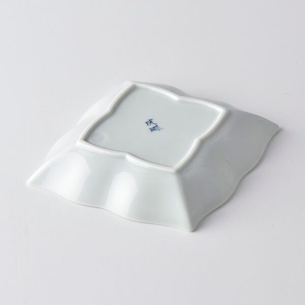 渕が波うって菱形の形をした器です。重なりは良く取皿にご利用出来ます。