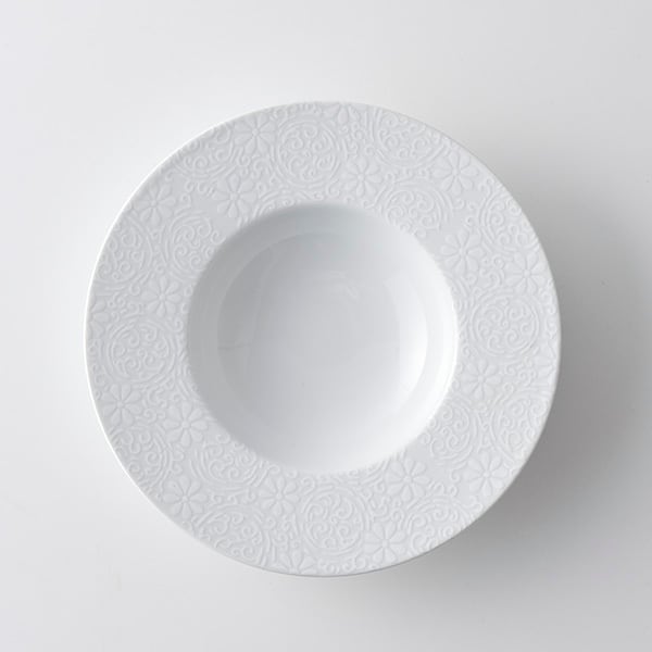 形は広渕になって中央の所がくぼんでおりスープを入れたり、スパゲッティーなどを入れたり