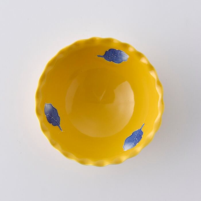 黄釉木ノ葉濃・波渕鉢