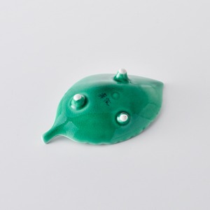 緑交趾 三ツ足葉型小付
